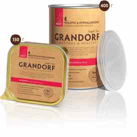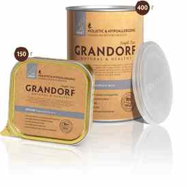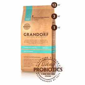 Таким образом, в кормах Grandorf исключены пшеница, кукуруза, свекла, бобовые, курица, яйца, субпродукты, соль и сахар, красители, соя, глютен и ГМО.